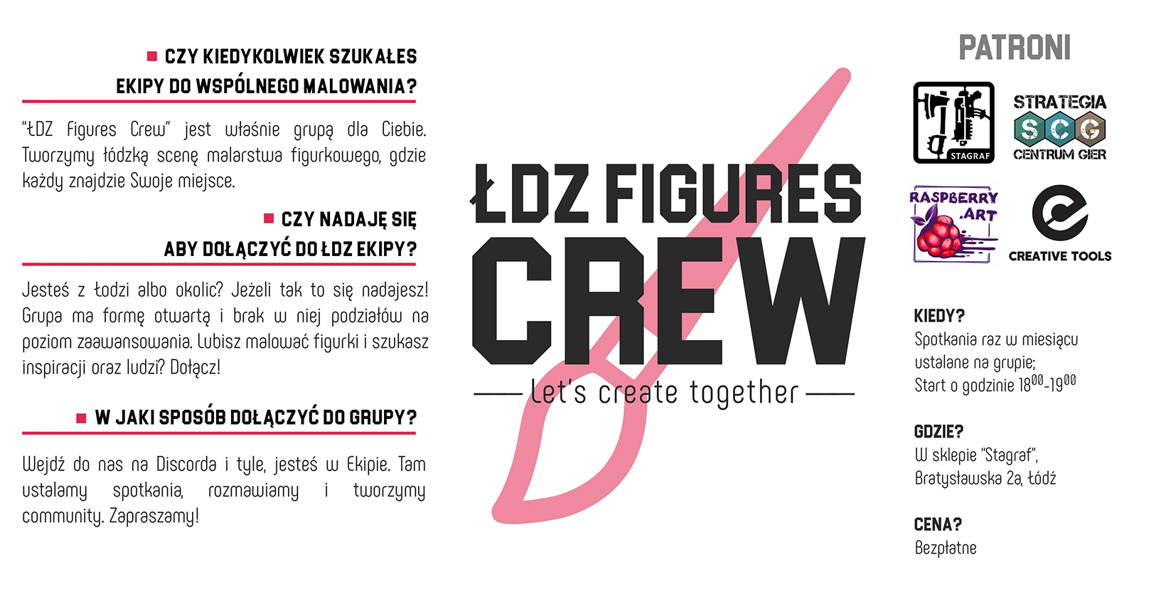 Grupa znajomych, przyjaciół, wariatów z tym samym bzikiem, którym jest malarstwo figurkowe. Jeden impuls sprawił, że już od 3 lat jesteśmy jedną wielką malarską Ekipą. Liczymy już ponad 30 członków i nie zwalniamy! Zarażamy miłością do malowania figurek, organizujemy wydarzenia, wspólne wypady i aktywności, oraz aktywnie rozwijamy Polskie środowisko malarskie.